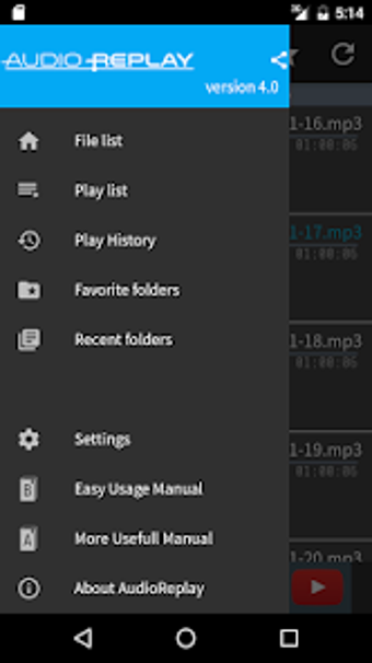 AudioReplayは、Androidデバイス用の音楽プレーヤーで、曲、アルバム、アーティスト、またはフォルダーごとに音楽ファイルを再生できます。お気に入りの曲のプレイリストを作成することもできる音楽プレーヤーです。AndroidデバイスにあるMP3、OGG、FLAC、WAV、M4Aなどのオーディオファイルを、ルートアクセスがなくても、またはAndroid OSがなくても再生できます。また、フォルダーにないデバイス上のオーディオファイルも再生できます。